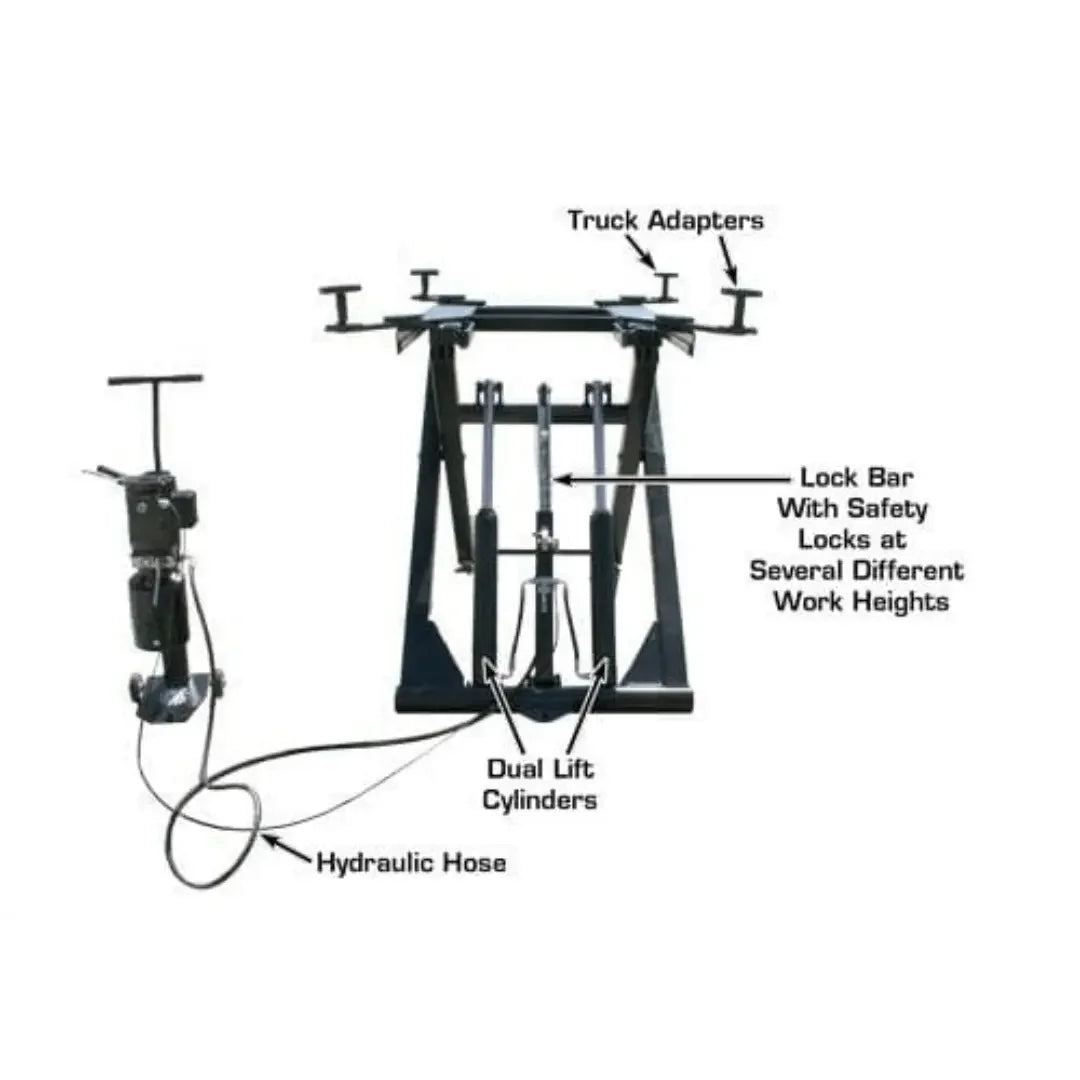 The Atlas® 6MR is a free standing 6,000 lb. capacity portable scissor lift. The 6MR is the perfect lift for body shops and wheel service specialists that need extra lifting height. This portable lift easily raises a 6,000 LB. car or truck to a comfortable working height. The unique platform design of the 6MR allows access to some areas on the underside of the car not easily accessible with other portable mid-rise lifts.